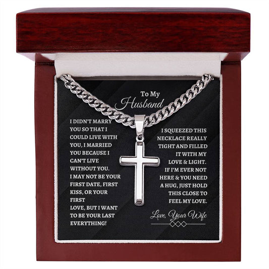 To My Husband Cuban Chain with Cross Necklace